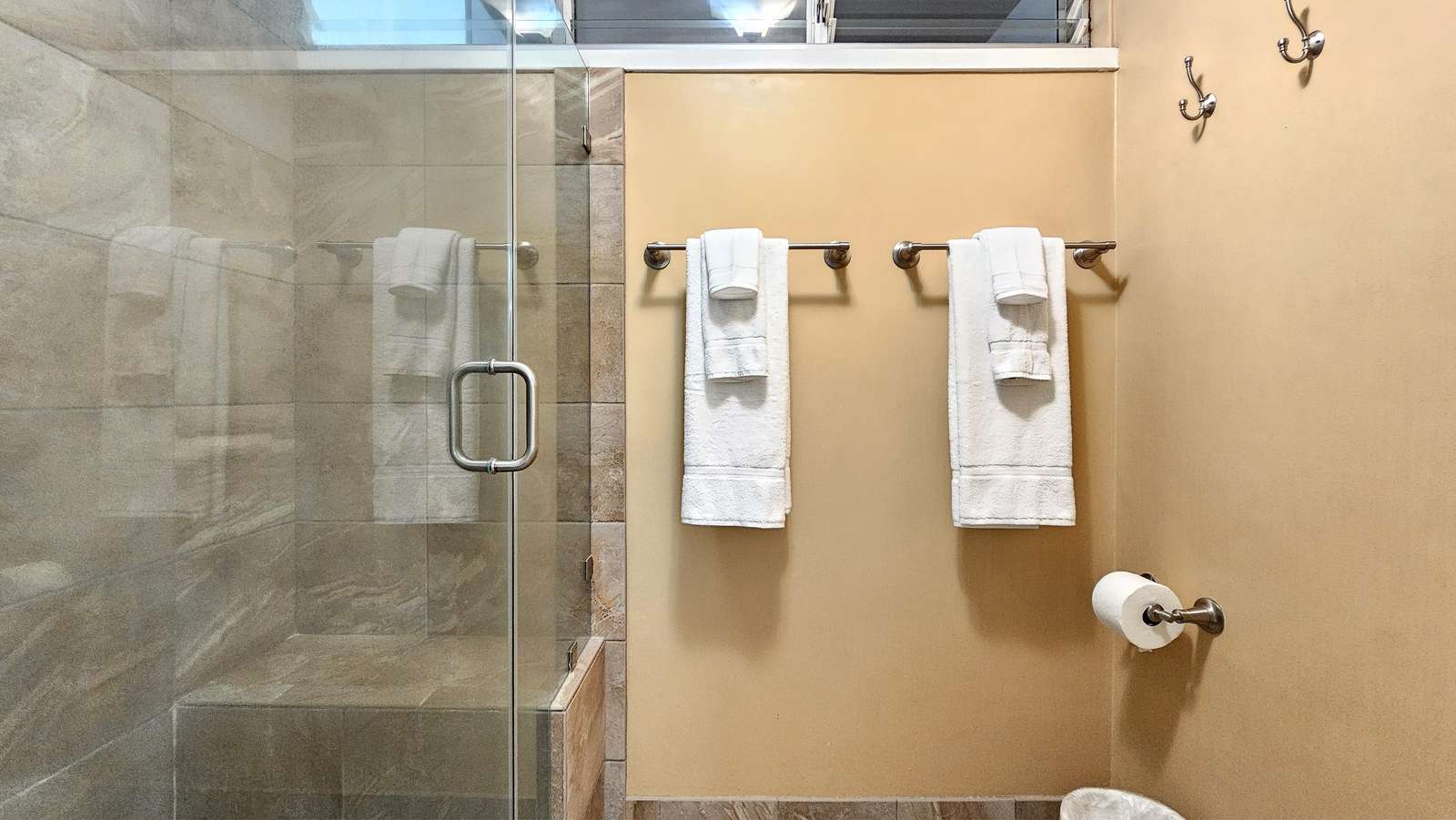 Full Bathroom with large walk in shower and spacious well lit double vanity