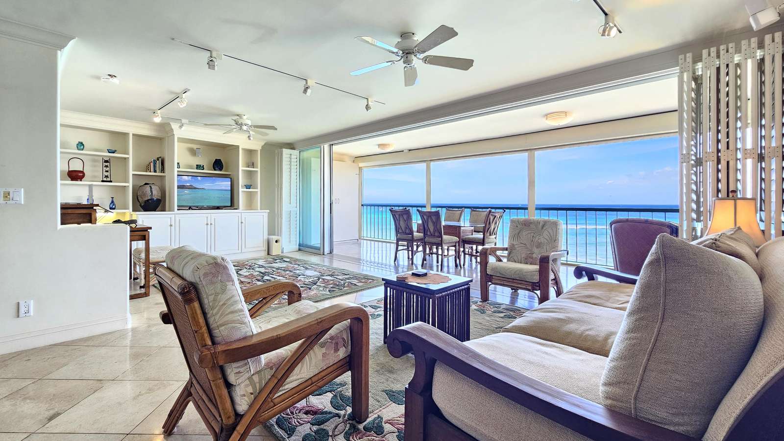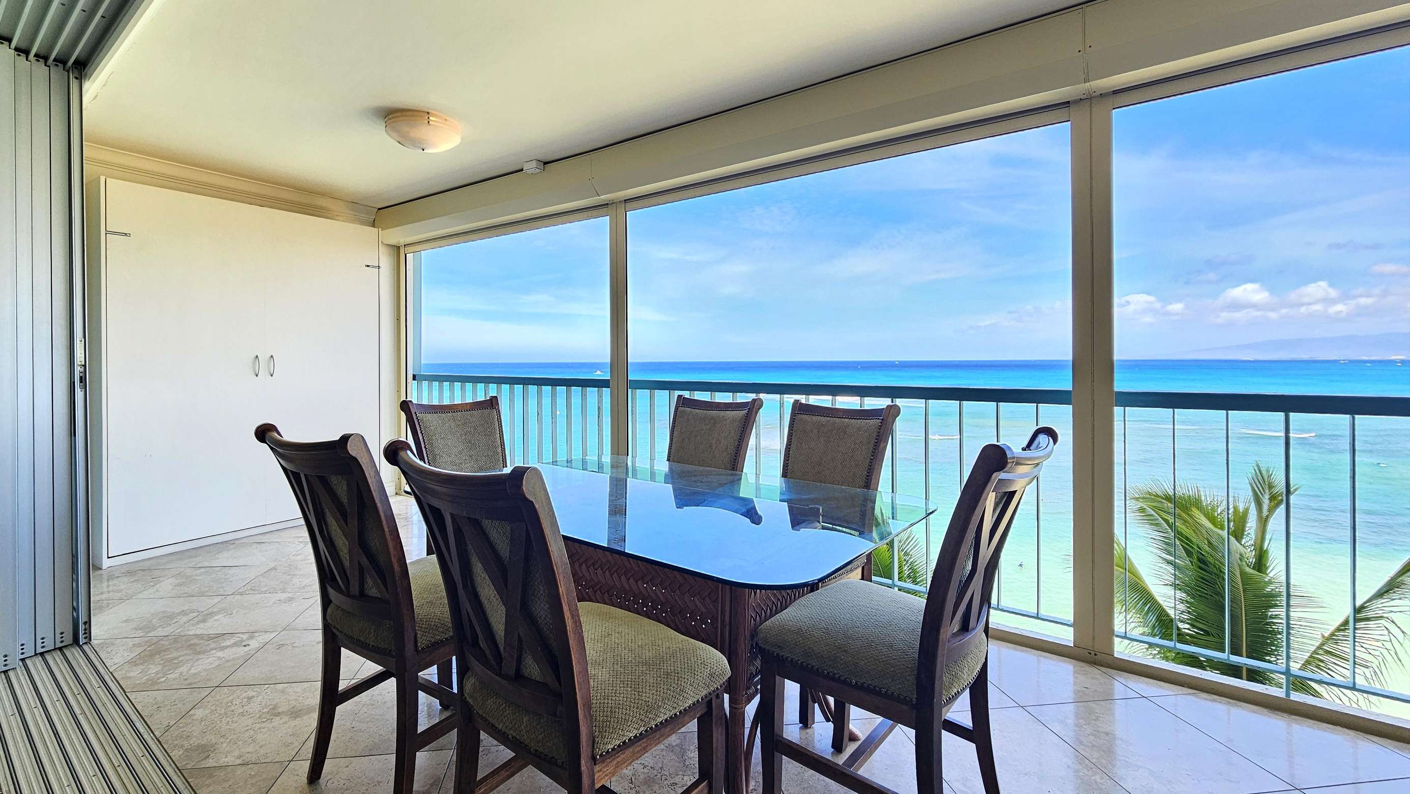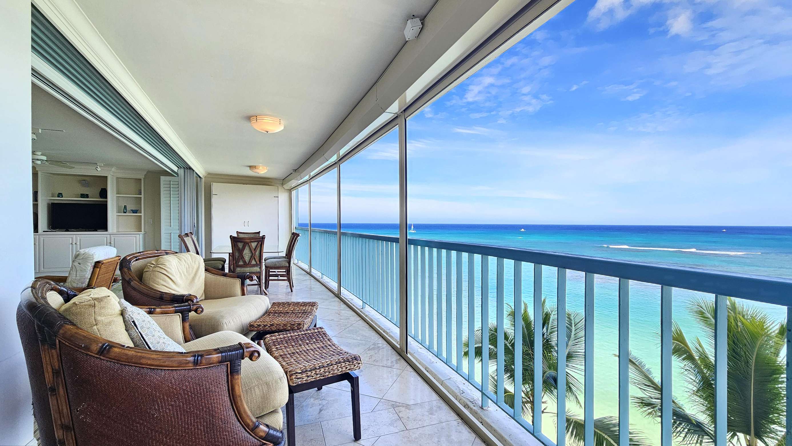Large Oceanfront Lanai stretches the full width of this beautiful 'above the beach' 5th floor delightful condo.