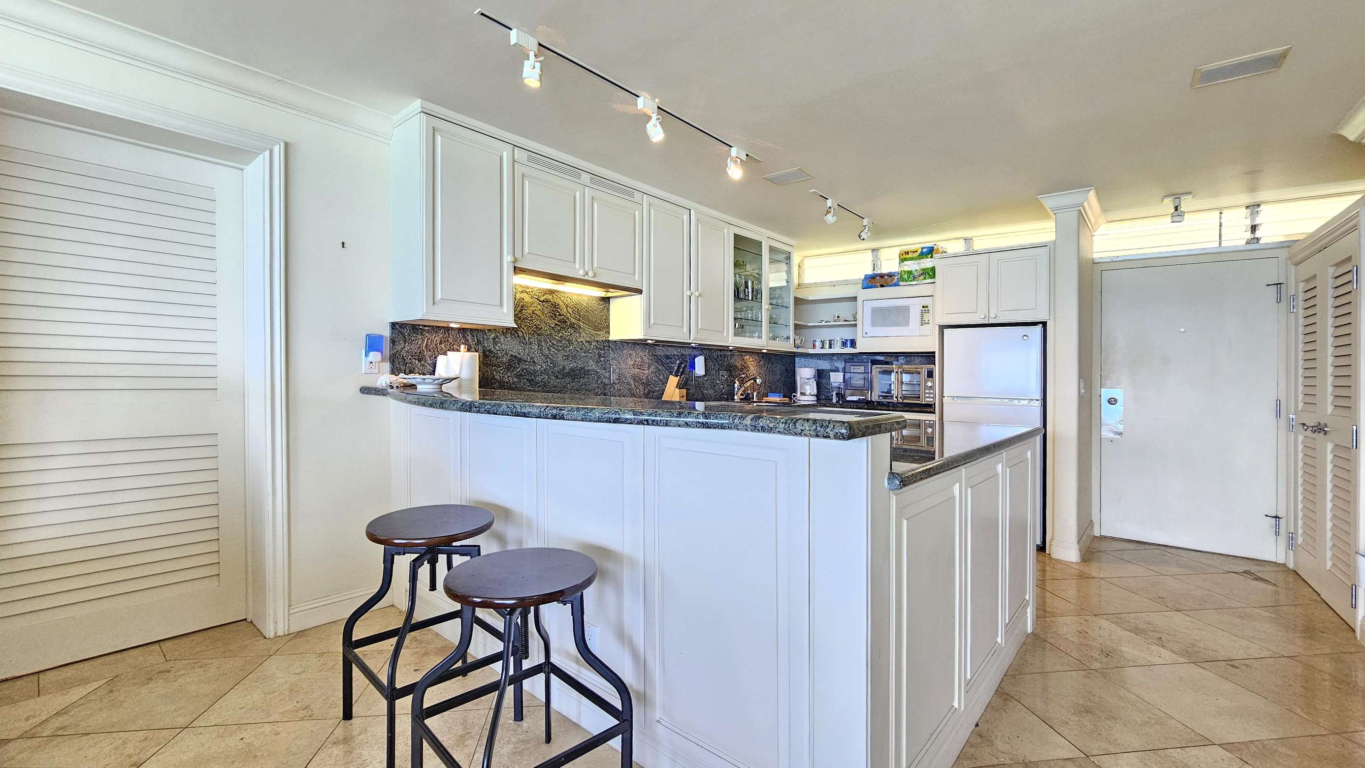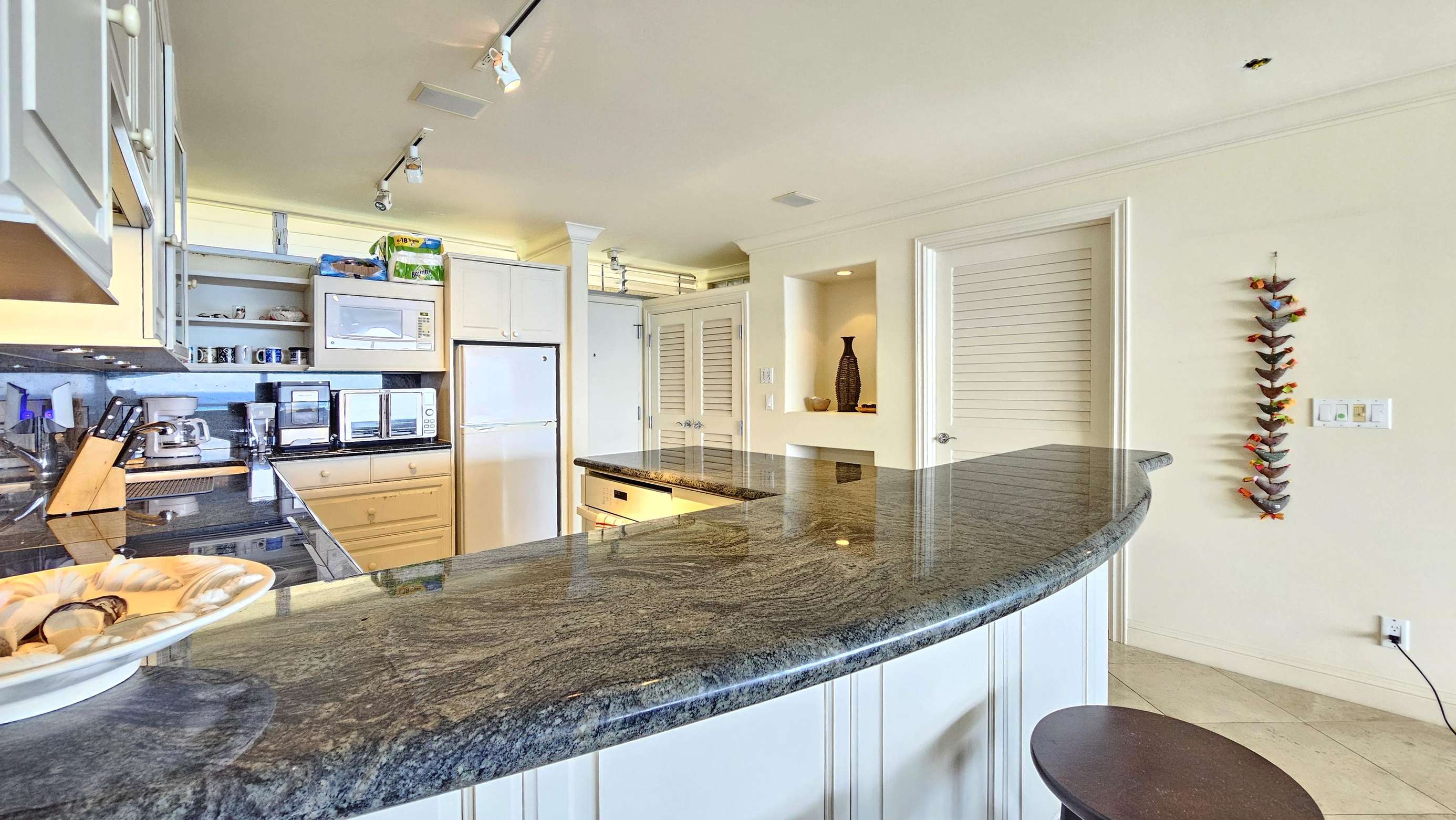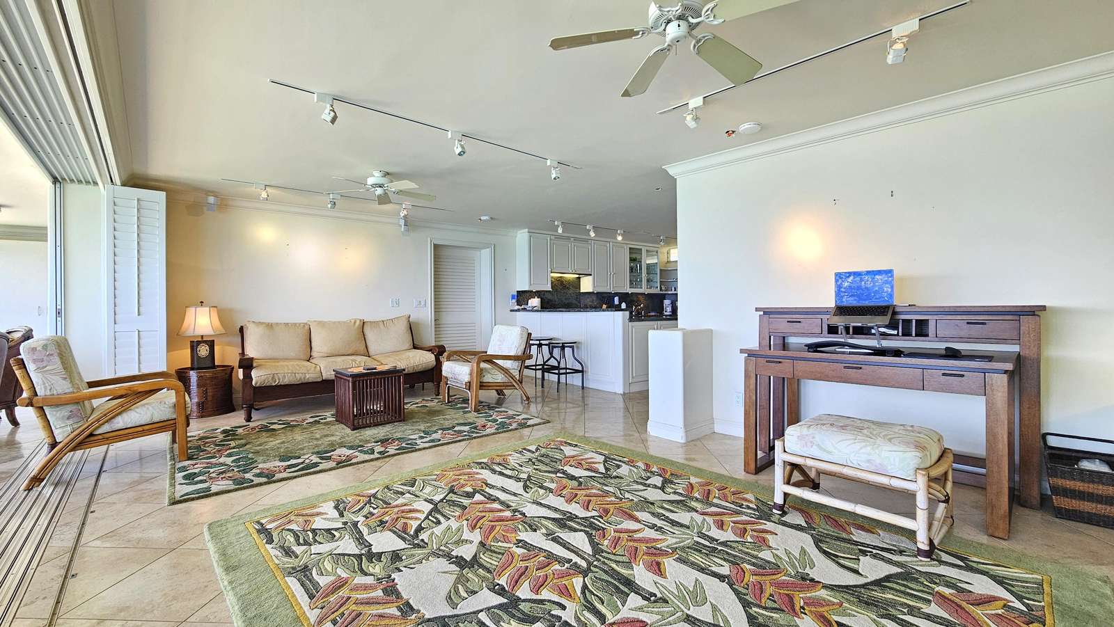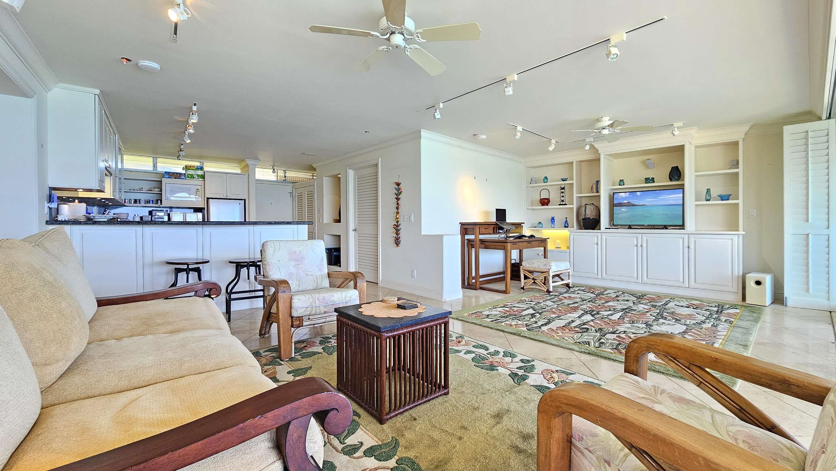 Large Oceanfront Lanai stretches the full width of this beautiful 'above the beach' 5th floor delightful condo.