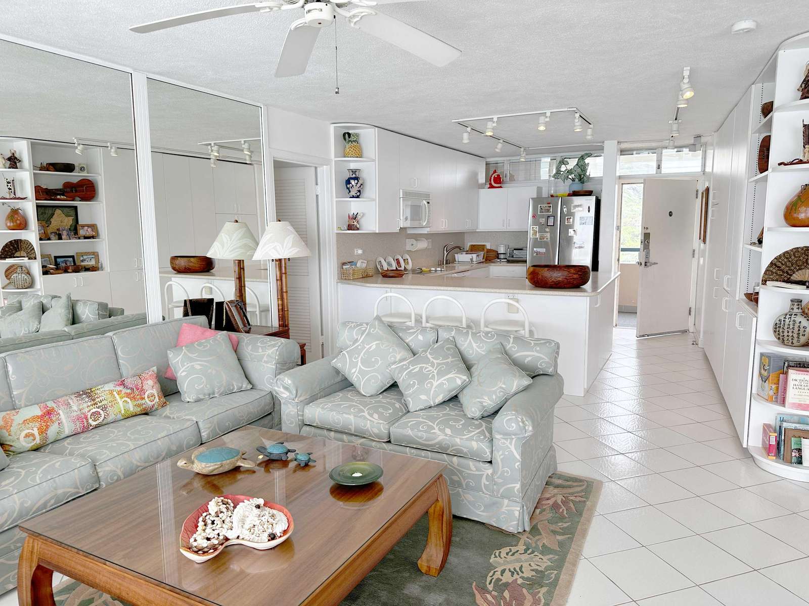 Nestled on Kaimana Beach, this charming, fully furnished two bedroom in Sans Souci is just steps away from the ocean. The unit boasts a complete kitchen and offers wifi & cable for your convenience. Enjoy the proximity to the renowned restaurant Hau Tree, located at the Seaside eatery, where creative Pacific Rim fare and brunch are served at the New Otani Kaimana Beach Hotel.